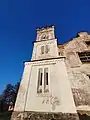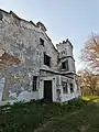Двоповерховий, із чотирма зубчастими вежами по кутах.