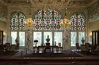 Головна будівля палацу побудована в середині XX століття при Мухаммеді Реза Пехлеві. Спочатку вона задумувалася як зал для офіційних гостей, однак згодом стала резиденцією шахської родини. Інтер'єр і дизайн виконані групою французьких архітекторів. На першому поверсі знаходиться головний зал, а також ряд бічних залів, їдальня, кінотеатр і вітальня. На верхньому поверсі знаходилися житлові кімнати сім'ї Пехлеві. Вони прикрашені коштовними картинами, килимами та подарунками з різних країн.