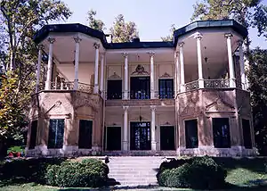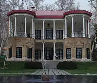 Палац Сахібкараніє почав будуватися при Насер ед-Дін Шах Каджарі в кінці XIX століття. Тоді були відбудовані зал прийомів, зимове приміщення, кілька маленьких будівель і тераса. У 1906, в розпал революції, в цьому палаці Мозафереддін-шах Каджар підписав першу іранську конституцію. При шахах Пехлеві павільйон був оновлений, в його дворі був викопаний басейн.