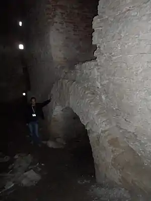 Архітектор-реставратор Євгенія Лопушинська зазначає існування приміщень найнижчого ярусу вже на план-схемі XIV ст., тобто у литовський період. Вони являють собою споруду з чотирьох кімнат, перкритих арочними склепіннями, що прилягає до південної стіни палацу і має бійниці на зовнішню сторону стіни. Матеріал - вапняк.