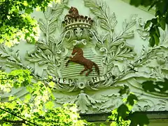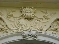 Графська корона і родинний девіз «FRIEDE HERR»