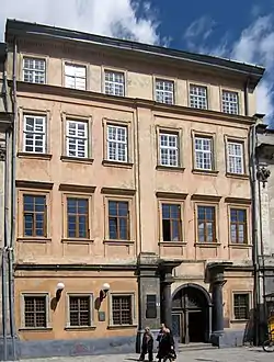 Сучасний будинок, який ще називають «архієпископський палац», був зведений за сприяння латинського архієпископа Львова Станіслава Ґроховського[3] на місці попередніх у 1634 році (Гроховський відмовлявся відбути «інгрес» на посаду архієпископа, поки не завершили коштовні роботи з оформлення фасаду палацу[4]) і займає дві ділянки (архітектор Ян Покорович). Протягом століть був помешканням королів Польщі.[5]