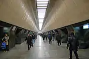 Тематично-архітектурна будова перону відображає свою особливість, трохи збільшена висота залу дозволила авторам створити її динамічність. Оздоблювальні матеріали — мармур, граніт, кольоровий метал надають станції індивідуальності.