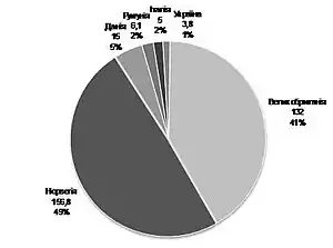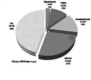 Майже такі ж проблеми з видобутком природного газу, роль якого у народному господарстві України особливо важлива: частка газу у первинному споживанні енергії — майже 43-45 % (рисунок 3), у два рази перевищує європейський (21 %) та світовий (25 %) рівні.