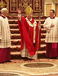 З 29 червня 2008 використовується паллій нового типу. Він ширший попереднього і є у формі кола з двома кінцями, що спускаються посередині спереду та ззаду. Паллій такої форми вперше з'явилися в X або XI столітті. За словами єпископа Маріні, обер-церемоніймейстера Ватикану, форма паллія, прийнята Бенедиктом XVI після свого обрання (з кінцем, спускається з лівого плеча) і походить з VI століття, викликала деякі проблеми та незручності, у зв'язку з чим було вирішено повернутися до округлої форми.