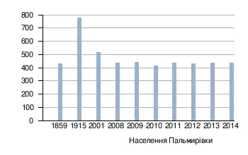 Станом на 1859 рік населення Пальмири становило: 62 двори тa 427 осіб (210 чоловіків та 217 жінок).