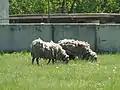 Вівці на випасі біля тваринницької ферми