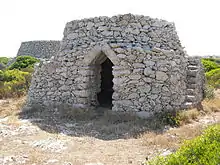 Ці споруди за своїму виконанням сильно нагадують труллі в Апулії — вони також мають форму зрізаного конуса з круглою або квадратною основою. Виконані з місцевого каменю методом сухої кладки, тобто без використання будь-якого зв'язуючого матеріалу. Зазвичай в будівлі — лише одне приміщення, без вікна на вулицю. Стіни зазвичай досить товсті, що забезпечує прохолоду навіть у найспекотніші місяці.
