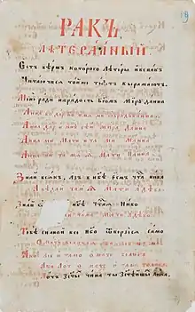 Українські вірші-паліндроми (або вірш-рак) почав писати ще в XVII столітті Іван Величковський, який 1691 дав визначення віршу-раку: «Рак літеральний єсть вірш, которого літери, і вспак читаючися, той же текст виражають» («Млеко»). Професор Києво-Могилянської академії Митрофан Довгалевський наводить приклади паліндромів у своїй праці «Hortus Poeticus» (1736). В казці «Лис Микита» Івана Яковича Франка мавпа Фрузя розмовляє «чарівною» паліндромною мовою (пісня 12).