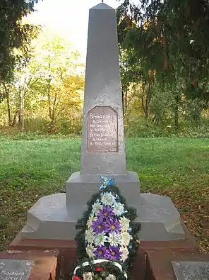 Обеліск у формі піраміди, у верхній частині якого хрест, замість п’ятикутної зірки. На ньому напис «Вічна пам'ять воїнам, які загинули у Великій Вітчизняній війні 1941-1945 рр.»