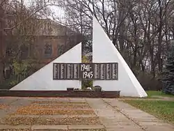 Пам'ятник робітникам і службовцям рудоуправління ім. К. Лібкнехта, загиблим у роки Другої світової війни, відкритий у травні 1980 р., архітектор — М. П. Яглович.