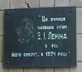 | Володимиру Леніну, меморіальна дошка | 22 квітня 1990 року | влітку 2015 року | на вулиці Благодатній, 80; біля центрального входу школи № 3 | 50°29′53″ пн. ш. 30°45′09″ сх. д. | ![]() | Була врочисто відкрита до 120-ї річниці із дня народження Володимира Леніна.[36] Зі слів голови комісії Броварської міської ради з питань найменувань і пам'ятних знаків, станом на 18 серпня 2015 року табличка демонтована.[29][22] |