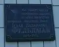 | Ісааку Фельдману, відомому лікарю Броварів | на вулиці Ярослава Мудрого, 45; на будівлі дитячої поліклініки | 50°30′06″ пн. ш. 30°46′59″ сх. д. | ![]() | Установлено на будівлі колишньої лікарні, де з 1902 до 1942 років працював Ісаак Фельдман. | |