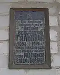 | Абраму Гальбичу, члену ревкому, радянському окупанту | на садибному будинку по вулиці Миколи Костомарова, 10 | 50°30′13″ пн. ш. 30°46′20″ сх. д. | ![]() | Установлено на честь більшовика, одного з перших організаторів окупаційної радянської влади у Броварах. | |