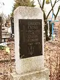| Пам'ятник на похованні Ісаака Фельдмана та Олени Павлової | поч. травня 2013 року | на Старому міському кладовищі | 50°30′11″ пн. ш. 30°47′34″ сх. д. | ![]() більше фото | Пам'ятник розташований на могилі Ісаака Фельдмана та Олени Павлової, на Старому міському кладовищі. На пам'ятній плиті з аверсу зображені імена померлих, роки життя Ісаака Фельдмана, медичний знак. З реверсу — зображення Ісаака Фельдмана та його прізвище з ініціалами. До встановлення пам'ятника поховання було у вигляді двох могил. Над похованням Ісаака Фельдмана стояв металевий пам'ятник із фотографією та табличкою з його іменем і роками життя.[15] |