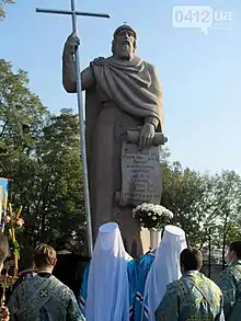 | Володимир | ![]() | Автори — львівські скульптори Теодозія Бриж та Любомир Яремчук[2]. |