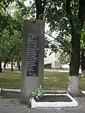 | На честь воїнів 253-ї стрілецької дивізії 47-го стрілецького корпусу 40-ї армії 2-го мотострілецької бригади 10-го танкового корпусу пам'ятний знак | на вулиці Миру | ![]() | Встановлено на честь 2-ї мотострілецької бригади 10-го танкового корпусу 47-го стрілецького корпусу 253-ї стрілецької дивізії 40-ї армії, яка 19 вересня 1943 року звільняла місто | |