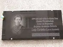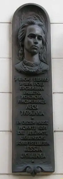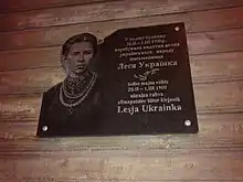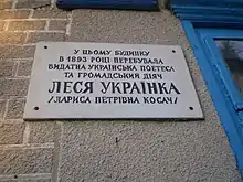 Пам'ятна дошка місцю перебування Лесі Українки в Києві | ![]() |