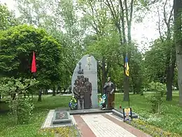 | Ліквідаторам аварії на ЧАЕС та постраждалим внаслідок Чорнобильської катастрофи 26 квітня 1986 року, пам'ятний знак | 2008 | у парку «Меморіал вічної слави» | ![]() | Згори пам'ятний знак має вигляд символу радіаційної небезпеки. Центральна скульптура зображає херувима. |