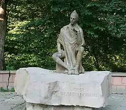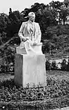 Відкриття пам'ятника Шептицькому відбулося 27 вересня 1935 року. Автором цього пам'ятника був скульптор Сергій Литвиненко. Створена Литвиненком сидяча скульптура митрополита з великою точністю передавала його образ. Уночі з 9 на 10 серпня 1947 року скульптуру розтрощено на шматки, а її уламки вивезено у невідомому напрямку. На місці пам'ятника у 1960-х рр. встановили божка Святовита з села Лопушня[50]. |