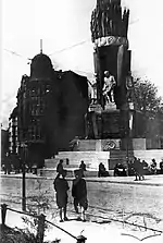 У 1940 перед пам'ятником Яну Собеському був установлений дерев'яний обеліск із соцреалістичними фігурами солдата, робітника й селянина. На п'єдесталі містилися написи українською, польською та єврейською мовами. Монумент був зруйнований у червні 1941 року, ще до вступу німецьких військ до Львова. |