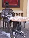 Відкритий 13 червня 2009 року, скульптор — Володимир Цісарик. Встановлений з нагоди 12-ліття з часу відкриття клубу «Picasso» і є першим в Україні пам'ятником Пікассо[14]. Художника зображено з голим торсом, у шортах та босоніж. Він стоїть і курить цигарку, кінчик якої світиться червоним полум'ям. У клубі пояснили такий вибір вигляду пам'ятника тим, що таким художник зазнимкований на багатьох фото[15]. | |