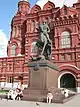 | Жукову Георгію, маршалу | на Манежній площі | Пам'ятник радянському полководцю і державному діячеві, Маршалу Радянського Союзу, одному з найвідоміших військових командувачів Другої Світової війни Г. К. Жукову було встановлено 8 травня 1995 року, відповідно до Указу Президента РФ від 9 травня 1994 року № 929. Автори — скульптор В. М. Кликов та архітектор Ю. Г. Григорьєв. Пам'ятник являє конну статую на гранітному постаменті вагою 100 тон[9]. | ![]() | |
