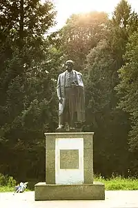 Бронзовий пам'ятник Тарасу Шевченку на бетонному постаменті був встановлений у 1958 році. |