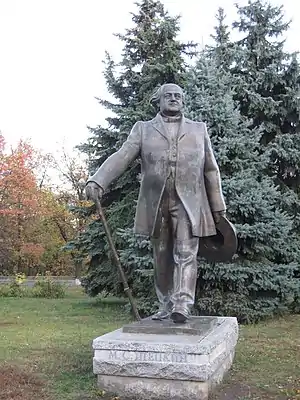 | Щепкіну Михайлу | 1989 | Біля Сумського театру драми і музичної комедії ім. М. С. Щепкіна на Театральній площі 50°54′20″ пн. ш. 34°47′55″ сх. д. | ![]() | Пам'ятник визначному російському театральному акторові Михайлу Щепкіну було встановлено 1989 року. Автор проекту пам'ятника — бєлгородський скульптор Анатолій Смілий[19]. |