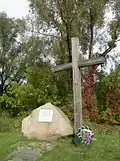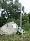 | Жертвам Голодомору, пам’ятний знак | 2009 | у мікрорайоні Заріччя | У день пам'яті жертв голодоморів 2009 року 27 листопада у фастівському мікрорайоні Заріччя відбулося відкриття пам’ятного знака, де раніше були плита та дерев’яний хрест. Пам’ятний знак було споруджено спільними зусиллями — підприємець М. М. Крук зробив ескіз та виготовив пам’ятник, директор комбінату комунальних підприємств Д. М. Юшков допоміг привезти та встановити плити, директор ЗАТ «Оболонь» «Пивоварня Зіберта» Л. І. Оніщук та заступник міського голови О. Й. Цвібель допомогли піском, щебенем, землею та бетоном, велику допомогу надав інспектор ККП О. О. Загороднюк[3]. | |