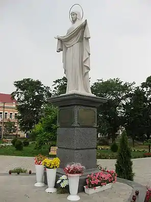 | Скульптура Божої Матері | 2009 | Вул. Торгова | ![]() | Автор — Віктор Тишкевич. Скульптура є зменшеною копією львівської Божої Матері. Розташовано скульптуру на місці зруйнованої більшовиками Покровської єдиновірної церкви. У висоту сягає 2,5 метра, виконана з білого штучного каменю, дивиться на схід сонця. |