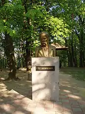 Гіпсову копію погруддя було встановлено ще 1991 року, а до Дня міста 2006 року (6 жовтня) за сприяння політиків і громадськості міста її замінили на оригінальний витвір з міді[1]. Автор — Микола Лисаківський. |