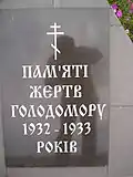 | Тернопіль | Жертвам голодомору, пам'ятник | 20?? | у зовнішній стіні церкви Різдва Христового | |||