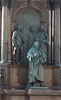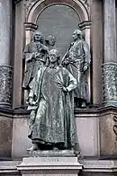 - лікар Герард ван Світен на статуї, нумізмат Йоганн Йосиф Гіларій Еккель, історик Дьєрдь Прай, композитори Крістоф Віллібальд Глюк, Йозеф Гайдн та Вольфганг Амадей Моцарт у дитячому віці на барельєфі на фоні Віденського університету.