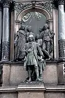 - радники Венцель Антон фон Кауніц-Ритберг (статуя), Іоганн Крістоф фон Бартенштейн, Гуднакер Томас Штаргеберг та Флорімон Клод де Мерсі-Аржанто на барельєфі на фоні Глорієтти Шенбрунна;