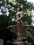 Струнка постать співачки в повний зріст в старовинному вбранні з капелюшком розміщена на круглому постаменті. Співачка зображена в нестримному поступі вперед, права рука спирається на вигадливий візерунок перил із застиглої музики.