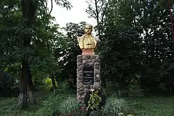 Погруддя виготовлене з гіпсу, висота — 1 м, постамент — із каменю, висота — 2,3 м.