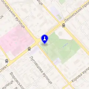 Знаходиться в Ленінському районі Донецька, по Ленінському проспекту, біля Палацу культури металургів.