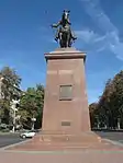 - Бронзова кінна статуя була відлита за рахунок бюджету міста Москви на Санкт-Петербурзькому заводі монументальних скульптур. Пам'ятник був перевезений в розібраному вигляді з Росії і змонтований російськими фахівцями 12-20 серпня 2004 року. У ґрунт були забиті 13-метрові палі, на яких було закріплено споруду.