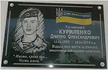 - Меморіальну дошку в пам'ять про героя російсько- української війни