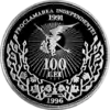 | 5 років Незалежності Молдови | 100 | 13 листопада 1996 | срібло, 925 | 28,28 | 38,61 | 20 000 | У центральній частині монети намальований лелека, з гроном винограду на тлі сонця. Нижче зазначений номінал монети (100 LEI), потім — популярний молдовський візерунок і під ним рік випуску монети. Вгорі, по колу монети розміщено написи: «PROCLAMAREA INDEPENDENTEI» і нижче «1991». | ![]() |