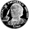 | 150-річчя з дня народження Михайла Емінеску | 100 | 29 листопада 2000 | срібло, 925 | 31,1 | 37 | У центрі поміщений портрет Емінеску. Поруч з портретом зображена чорнильниця з пером і розгорнута книжка. Зверху, по колу монети написи: «MIHAI EMINESCU» та роки життя «1850—1889». Знизу, під портретом — підпис письменника. | ![]() | |