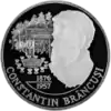 Внизу по колу монети напис: «CONSTANTIN BRANCUSI». |