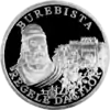 | Беребіста — король Дакії | 100 | 2005 | срібло, 925 | 31,1 | 37 | У центрі монети зображено портрет Беребісти на тлі сцени битви гето-даків з римлянами. По колу написи: «BUREBISTA» (зверху), «REGELE DACILOR» (знизу). | ![]() | |