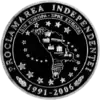 | 15 років Незалежності Молдови | 100 | 2006 | срібло, 925 | 31,1 | 37 | У центральній частині монети знаходиться карта-схема країни і 25 зірочок різного розміру. По колу монети є написи: «PROCLAMAREA INDEPENDENTEI», «DIN EUROPA SPRE EUROPA» (зверху) і «1991—2006» (знизу, між гілками дуба). | ![]() |