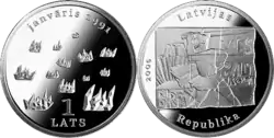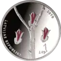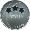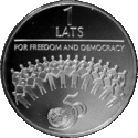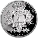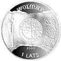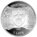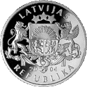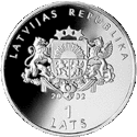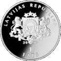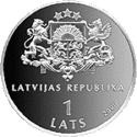 Монети номіналом 1 лат, масою 31,47 гр. і діаметром 38,61 мм викарбувані зі срібла 925 проби з якістю proof на монетному дворі Фінляндії. Дизайн: Ю. Петрашкевич.