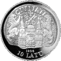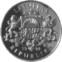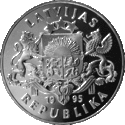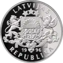 Аверс: герб і назва держави, рік випуску. Реверс: весляр на каное, номінал, напис на латис. OLIMPISKĀS SPĒLES • +1996 • ATLANTA - «Олімпійські ігри • +1996 • Атланта». | ||