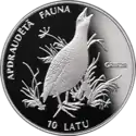Реверс: номінал, зображення тварини і її назва на латис. GRIEZE, назва серії на латис. APDRAUDĒTĀ FAUNA. | ||