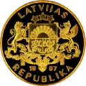 Монета Латвії <ref> Дизайн монети був розроблений Т. Залькалнсом в 1922 році, але вона так і не була викарбувана </ ref> | |