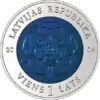 Монети номіналом 1 лат, масою 17,15 гр. і діаметром 34,00 мм викарбувані зі срібла 900 проби (зовнішня частина масою 10,00 гр.) і ніобію (внутрішня частина масою 7,15 гр.) з якістю UNC на монетному дворі Австрії. Дизайн: Л. Шенбергс.